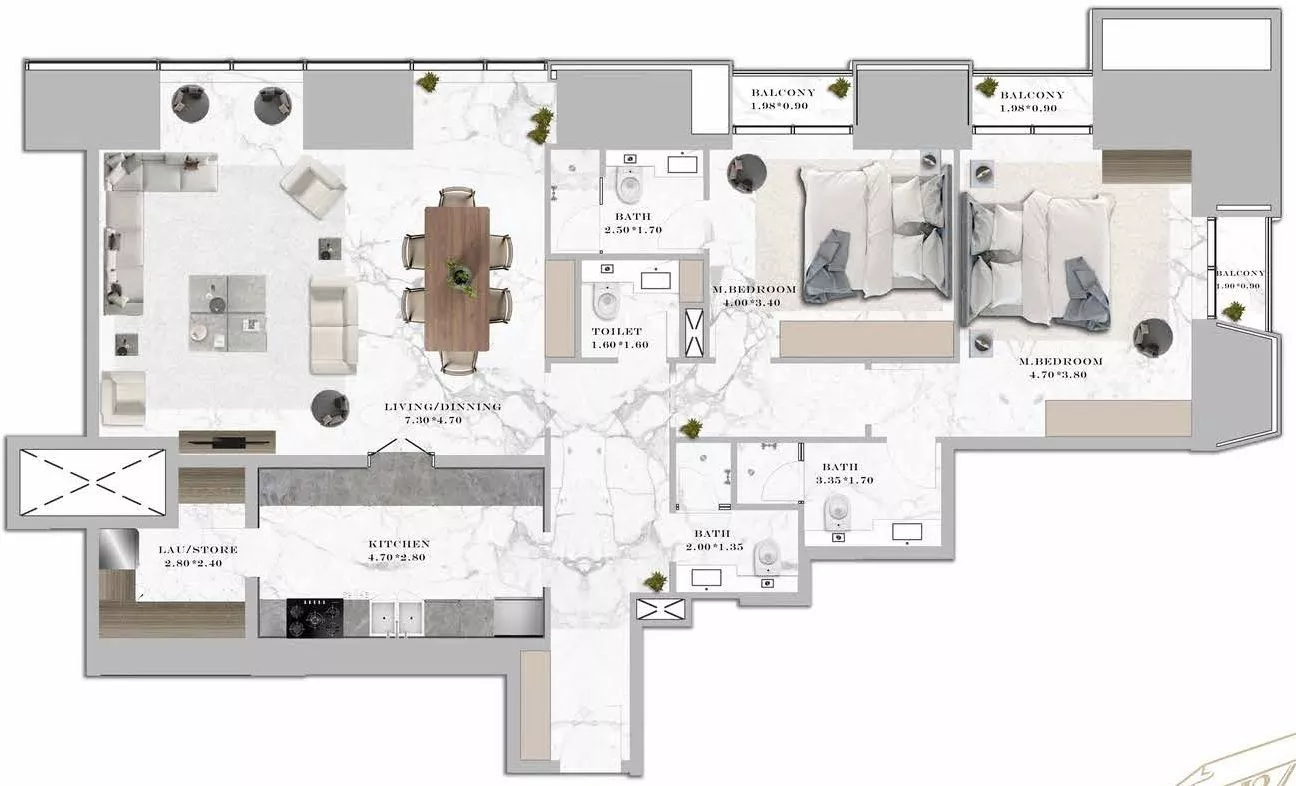 Apartments in Aeternitas London Gate come in different sizes and spacious rooms, stylish interior design that offer comfort, privacy, and elegance. Residents of this development can enjoy a range of recreational and leisure amenities, such as a gym, pool, park, BBQ areas, restaurants, and everything.