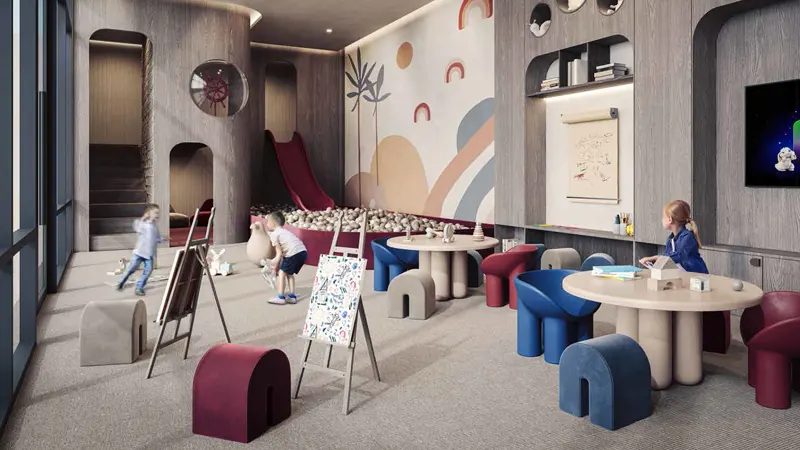 Designed with community in mind, the residential development features a range of amenities aimed at enhancing residents’ quality of life. From co-working spaces and a library to swimming pools and an outdoor track, the development provides ample opportunities for relaxation, recreation, and socialization. The proximity to cultural landmarks like the Louvre Abu Dhabi and recreational destinations such as Saadiyat Beach Club further enriches the living experience, while sustainable transportation initiatives underscore its commitment to eco-conscious living.