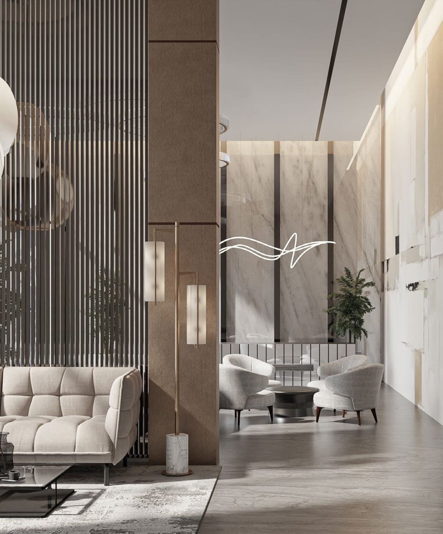From the moment you enter, Aura’s lobby speaks volumes of the luxury that awaits within. Adorned with elegant chandeliers, marble floors, and plush furnishings, the lobby is a testament to grandeur and sophistication.