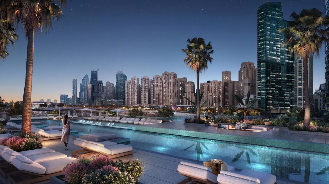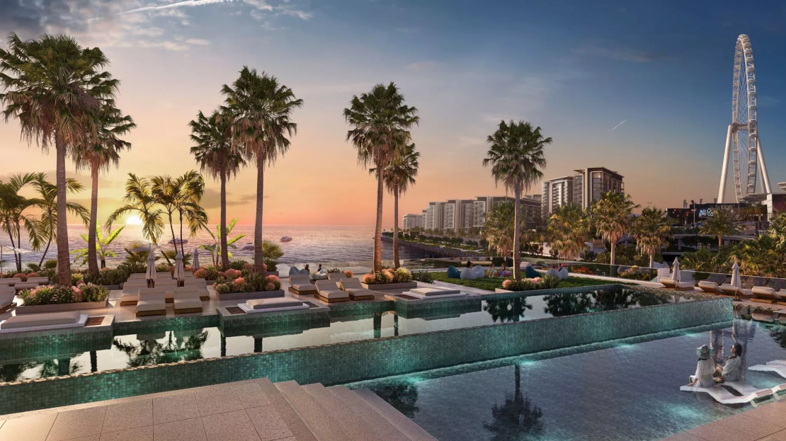 Bluewaters Bay is an upscale residential development by Meraas Holding, which is located on the iconic Bluewaters Island next to JBR beach. As an addition to the existing Bluewaters Residences complex, the Bluewaters Bay was launched in Q4 2022 and comprises 2 beautiful towers, with a selection of stylish 1–4 bedroom apartments and 3-bedroom opulent penthouses with generous living and dining spaces. In total, the residential project plans to have 672 residential units plus 1 retail unit.