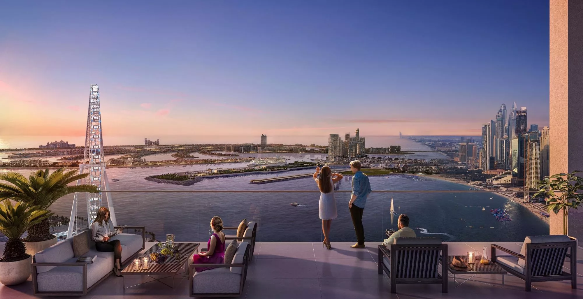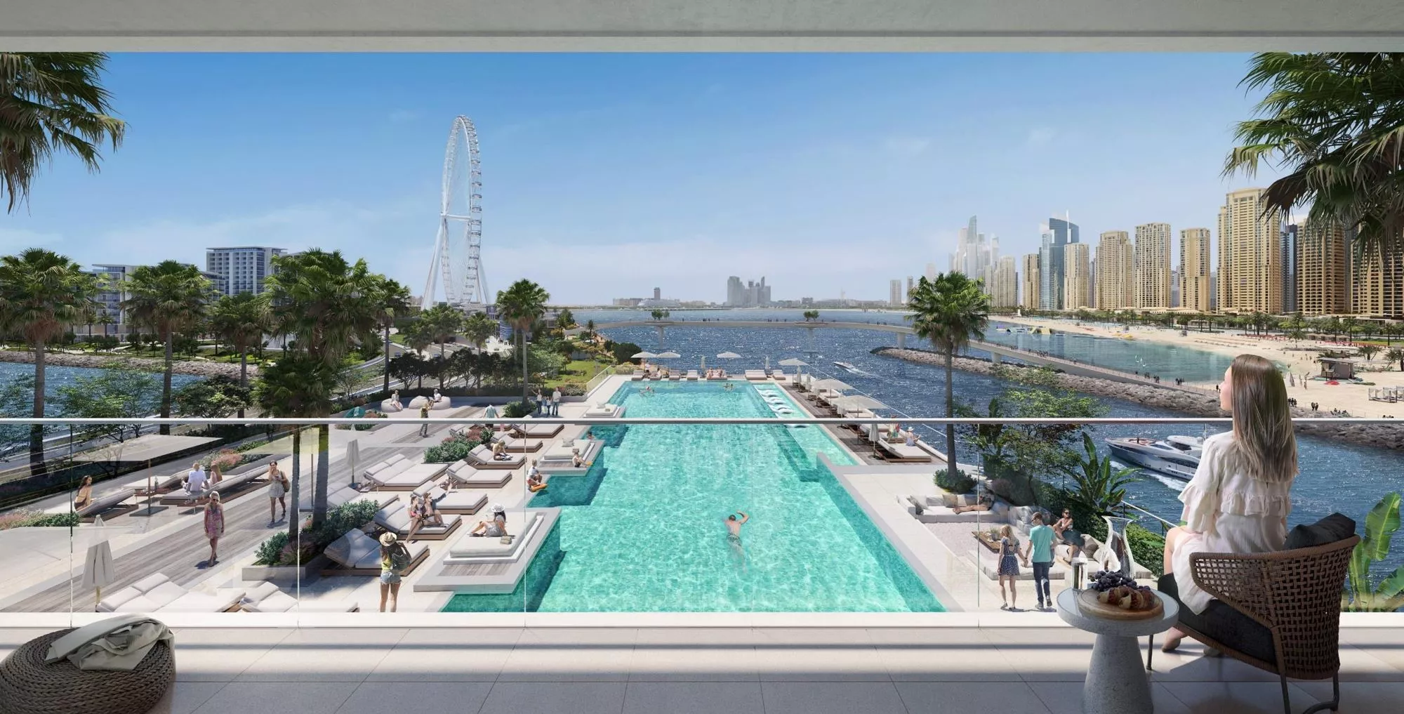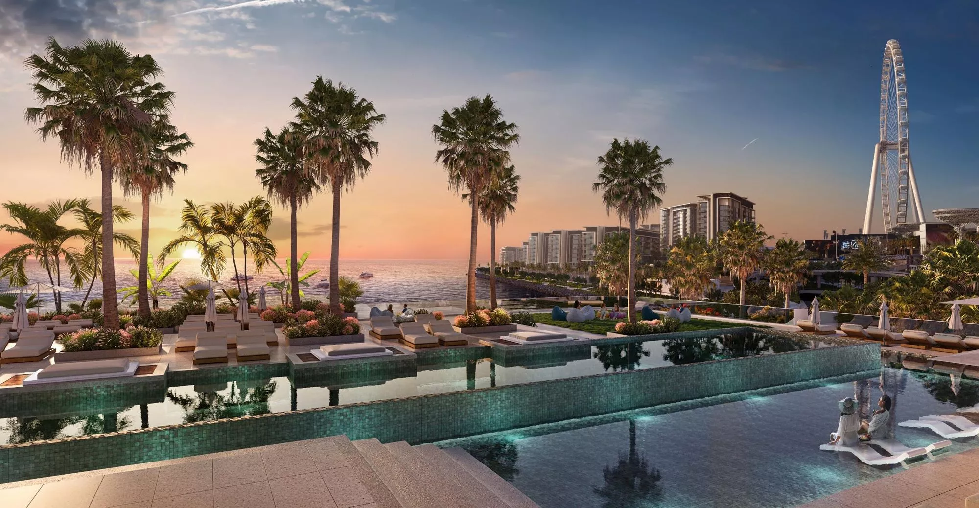 The size of the apartments in Bluewaters Bay varies between 800 sq. ft and 3,050 sq. ft, while the layouts include one or more balconies, overlooking the stunning Dubai waterfront and the iconic Ain Dubai. It is worth noting that select 2-bedroom apartments and all 3–4 bedroom residences will include a maid’s room, a dressing area and a powder room. From your master bedroom you will be able to enjoy an unparalleled sea view, allowing you to enjoy the gorgeous sunsets.
