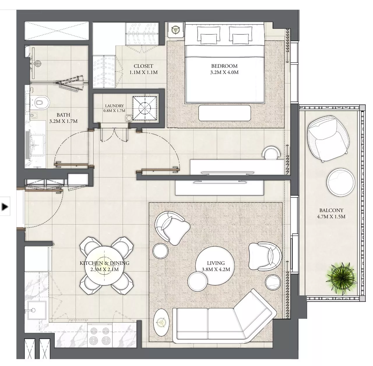 Cedar is a luxury 4-building complex by Emaar Properties in the coveted area of Creek Beach in Dubai Creek Harbour. It includes a total of 272 units, namely 1–3 bedroom apartments of 613 sq. ft. to 1,691 sq. ft. You will be able to enjoy stunning park views from the comfort of your own home. The key features of the layouts include a balcony, a laundry room and a closet for the utmost convenience of homeowners.