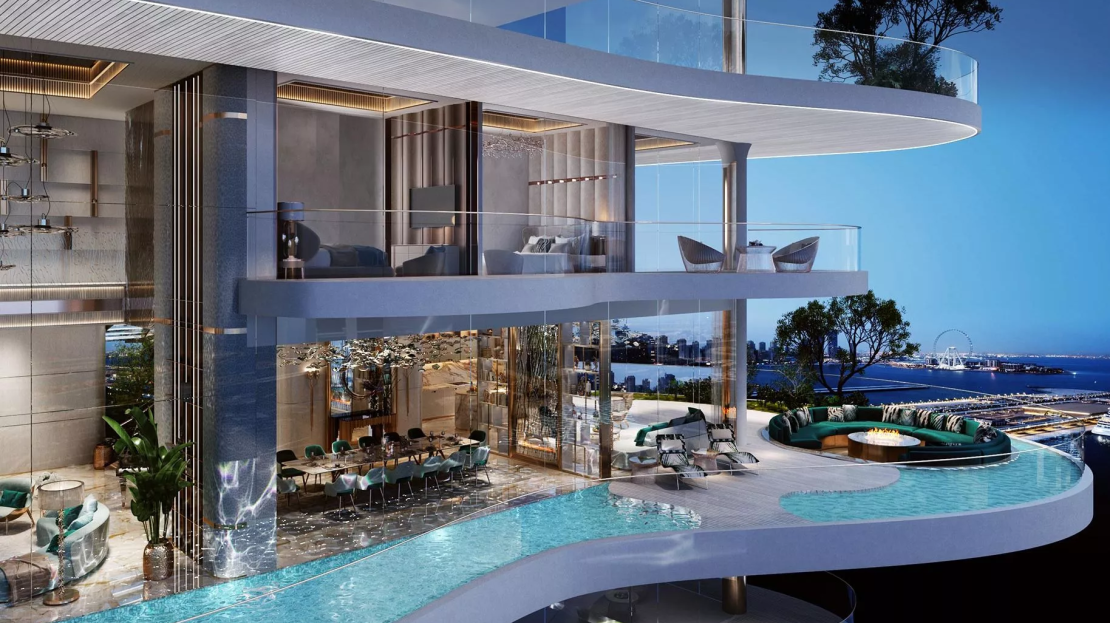 Set to become the next trending landmark in Dubai Harbour, DAMAC Bay by Cavalli is an elite 3-tower development by DAMAC Properties, in partnership with the world-renowned Cavalli brand. Prospective real estate buyers are presented with the opportunity to select their dream home from a range of exquisitely crafted ‘luxury’ apartments with 1–3 bedroom configurations. Those who want to experience a more elevated lifestyle can consider acquiring one of the limited-edition 3–5 bedroom duplexes with private swimming pools from the ‘super-luxury’ category, located on the upper floors of the branded complex. In addition, there are full-floor units available, as well under lucrative purchase conditions. Not forgetting the exclusive Skycrest Collection with upscale residences on the upper floors. The distinctive feature of the development is a 270-degree view of the beautiful surrounding landscapes.