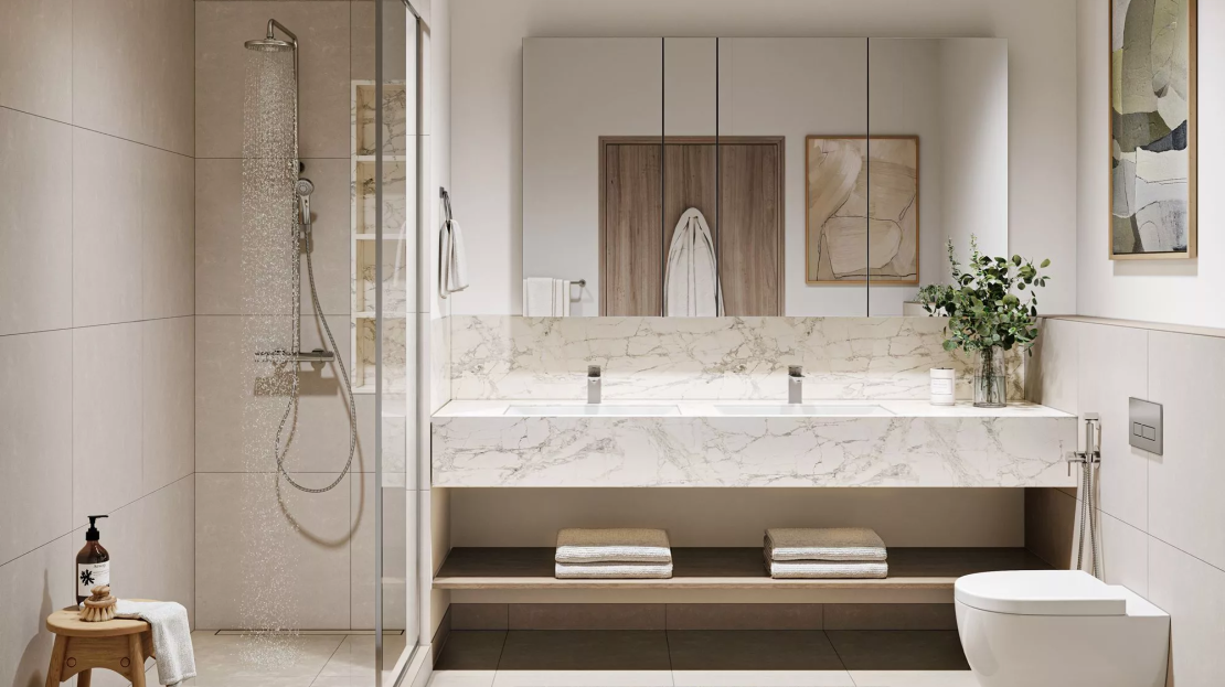 The living area of the properties ranges from 680 sq. ft to 2,011 sq. ft, and each residence will feature 1-2 balconies or a terrace, whilst 3-bedroom layouts will also come with a maid’s room. The design of the interiors will be executed in neutral tones, and complemented with porcelain tiles and laminate shutters with melamine carcasses.