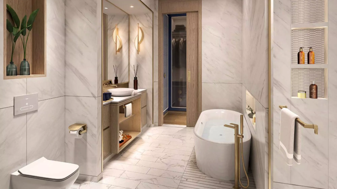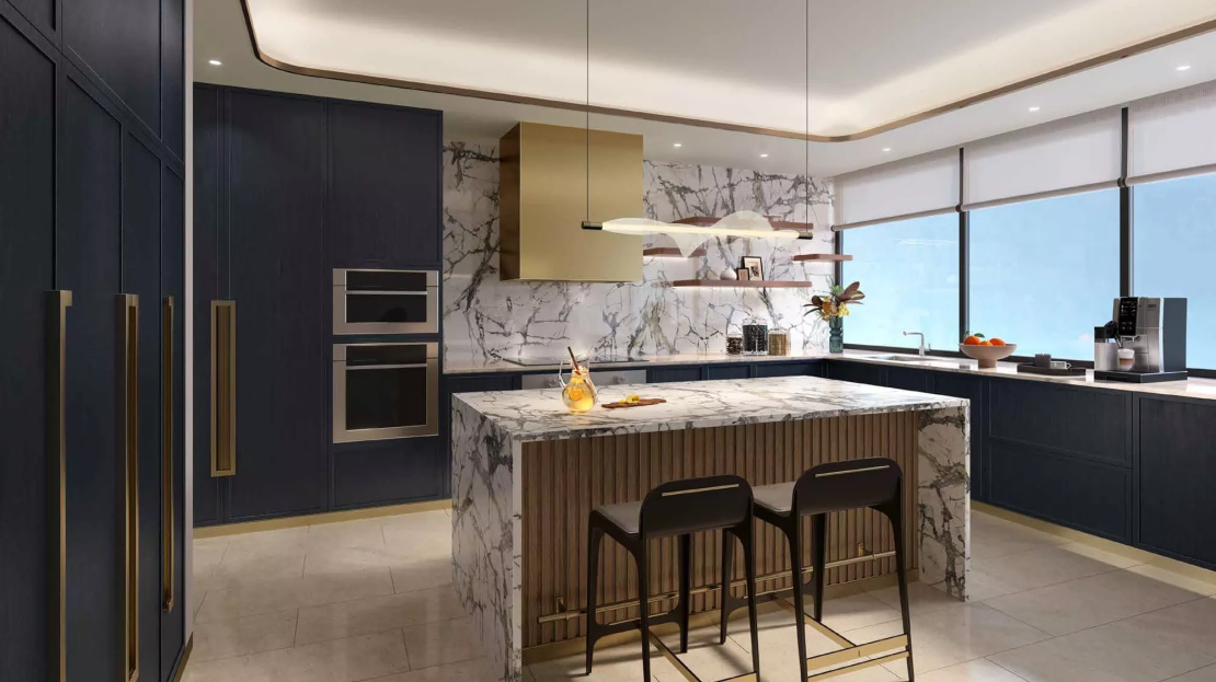 Select residences will have a private swimming pool on the terrace for the utmost convenience of the homeowners. The design of the apartments will feature white and gold decor, chandeliers and ceiling mirrors. Throughout the development, there will be various elements of luxury cruise ships, which will wow with the utmost exquisiteness.
