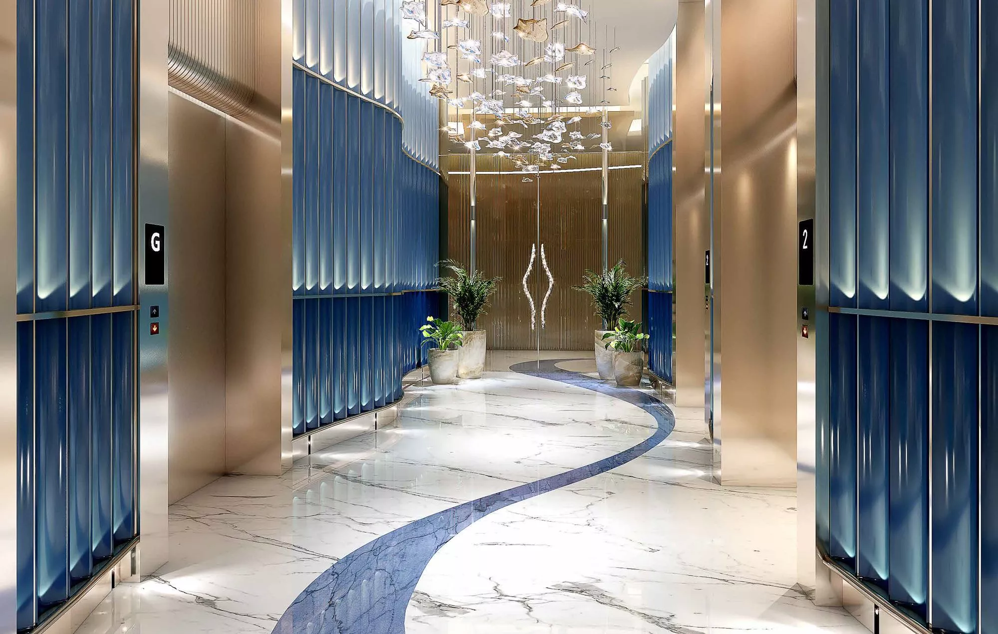 Select residences will have a private swimming pool on the terrace for the utmost convenience of the homeowners. The design of the apartments will feature white and gold decor, chandeliers and ceiling mirrors. Throughout the development, there will be various elements of luxury cruise ships, which will wow with the utmost exquisiteness.