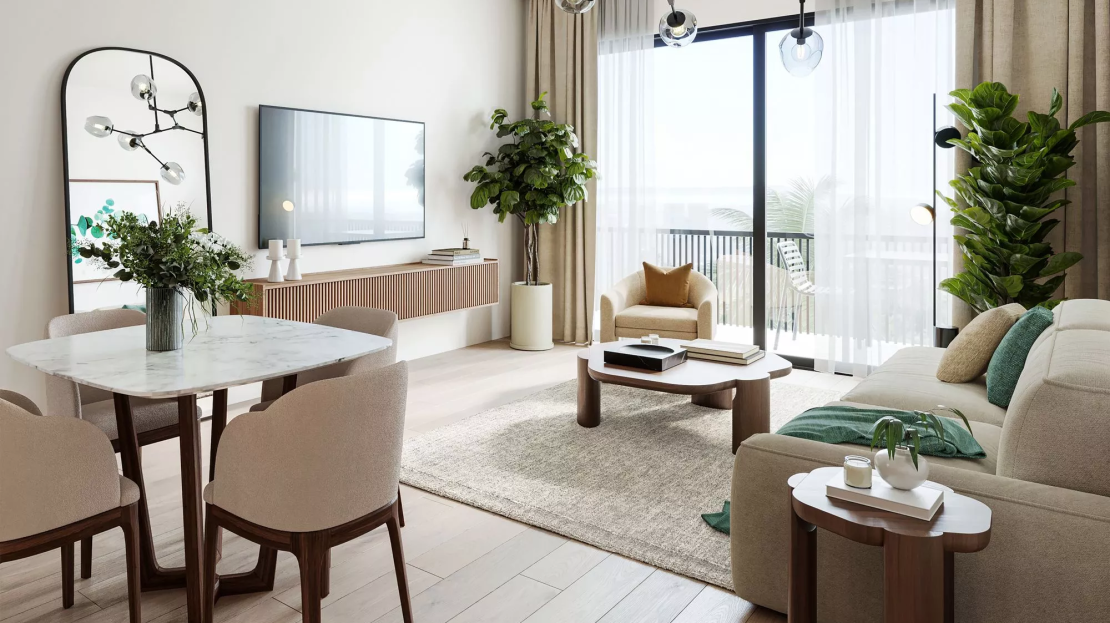The residences will come with fully fitted kitchens, which will have state-of-the-art appliances, stain-proof prep counters, overhead cabinets and glazed porcelain flooring. The bedrooms will be furnished with glazed porcelain floors and in-built wardrobes, whilst the master bedrooms will include an en-suite bathroom. In terms of the layouts, residents will enjoy private balconies overlooking luscious greenery. The owners of the 3-bedroom units will additionally have a laundry room and a storage room at their disposal.