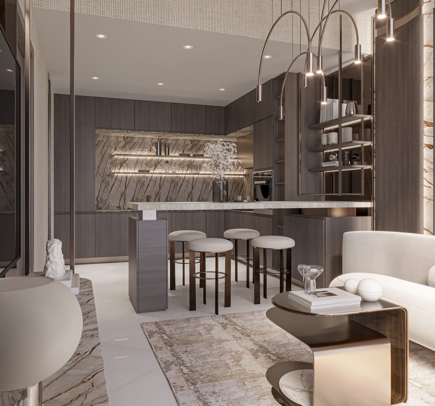 The facade showcases a premium collection of luxury residences that embody a vision of sophisticated urban living. From the moment you step into the development, you’re welcomed by an atmosphere of contemporary elegance and relaxed leisure. The apartments are a design masterpiece, featuring large windows that flood the spacious bedrooms with natural light and fresh air. With top-quality finishes and sleek architectural lines, these residences provide a spacious, refined haven in the heart of the bustling city.