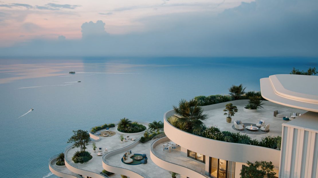 Miraggio is a sculptural architectural masterpiece set on the shores of Al Marjan Island, Ras Al Khaimah. Inspired by the movement of the sea and the tranquility of nature, its cascading terraces and curved façade seamlessly blend with the surrounding landscape. The building invites residents into a space of calm and timeless elegance — where every moment is shaped by the rhythm of the ocean, the warmth of the sun, and the organic flow of design. More than a residence, Miraggio is a sanctuary of art, architecture, and sensory well-being.