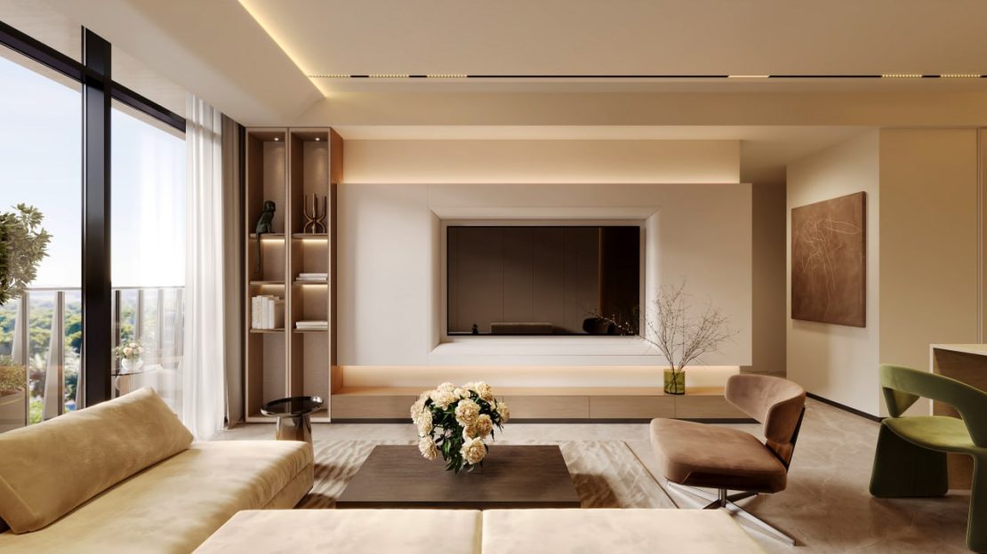The interiors of Oasis Residences are a testament to quiet luxury and timeless minimalism, creating a serene and inviting atmosphere. The design focuses on natural harmony, using organic textures, warm tones, and flowing spaces to create a retreat from the city’s pace. Each space is defined by a sense of ease and comfort, where every detail contributes to a calm and balanced environment.