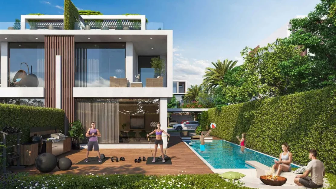 Each property has 3 floors. Among other key features are a garage, a private swimming pool, an outdoor gym/yoga platform, a laundry room, a storage room, a jacuzzi, a private cinema and a terrace. The size of the property is 3,542 sq. ft, whilst the plot area stands at 2,462 sq. ft.