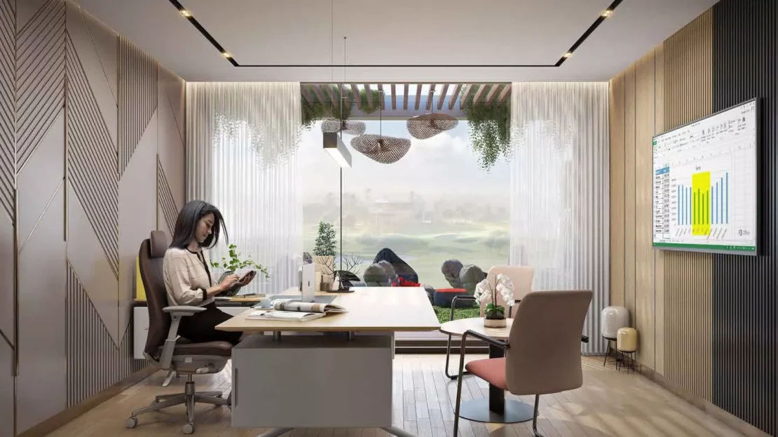 Park Greens is an upscale residential development by DAMAC Properties in DAMAC Hills 2. Nestled amongst lush leafy landscapes, the project features a collection of spacious twin villas. These have 4 dedicated bedrooms and 1 room to customise as you please; it can serve as an office, a game room or a personal library, for instance.