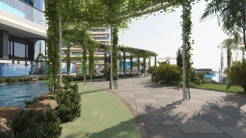Comprehensive amenities, including a swimming pool and outdoor gym, promoting an active and social lifestyle