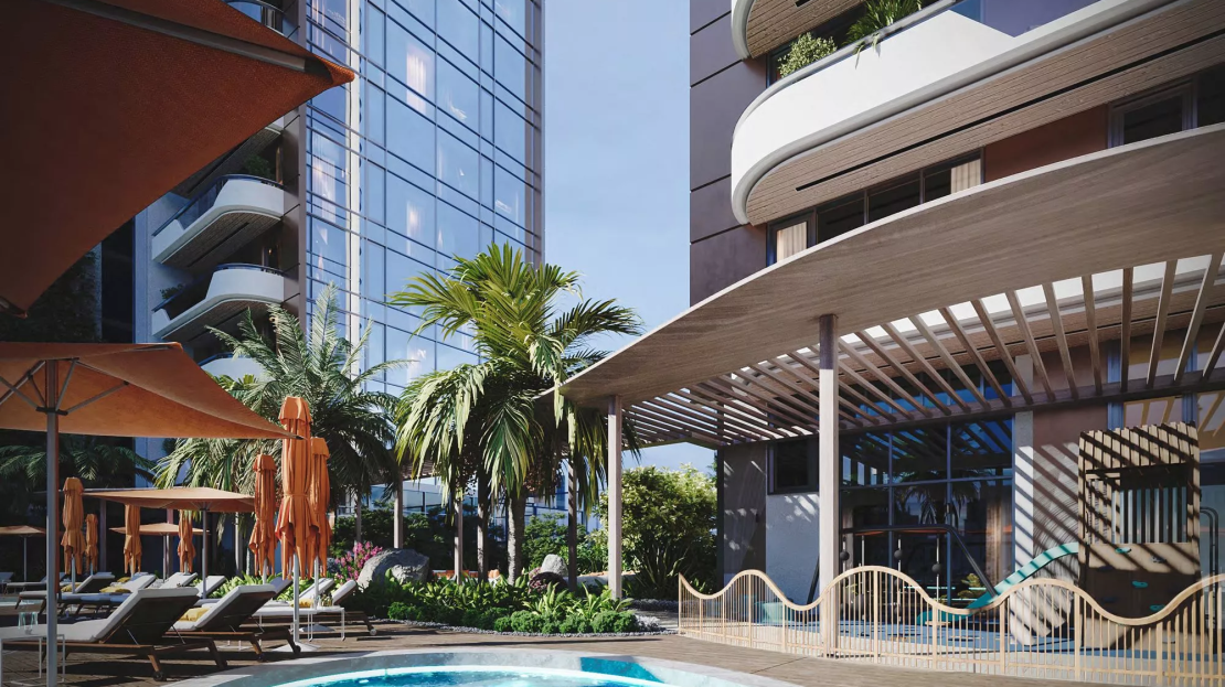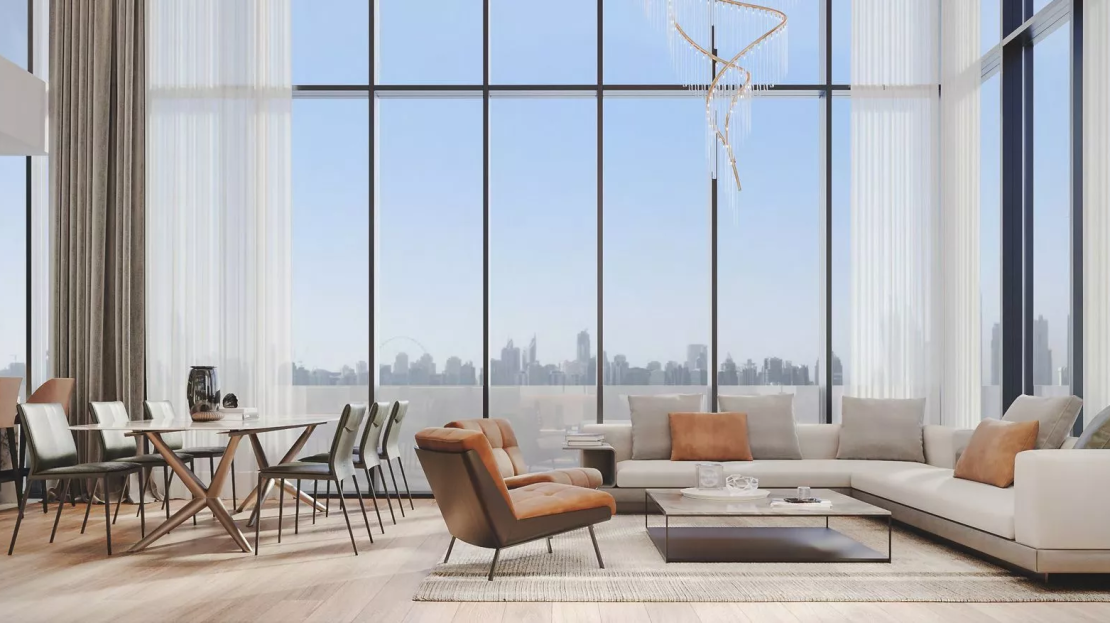 The residences are complemented with balconies and panoramic windows for maximum sunlight. Duplex owners will have an oversized terrace with a floor level built-in swimming pool at their disposal. At the same time, penthouses come with a double-height living room, a spacious terrace, and a high-level pool.