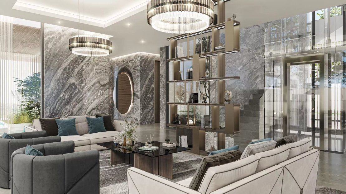 Among the key features of the layouts are an entertainment room, steam & sauna rooms, a gym, a parking area, a spa, a swimming pool, a cinema, a BBQ area, a terrace, a rooftop garden and more. For the utmost convenience of homeowners, the kitchens are fitted with cabinets and under-counter storage with stone countertops.