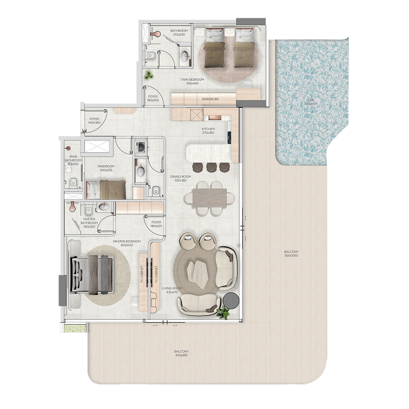 2 BR + Pool