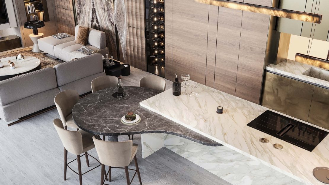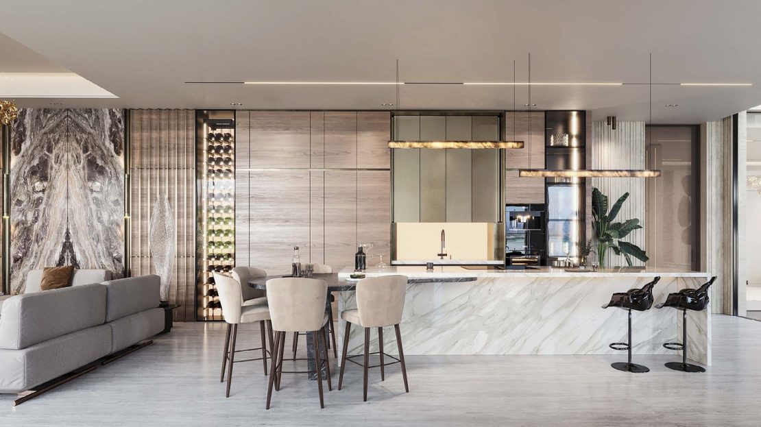 Villa Amaya at Palm Jumeirah is a sensorial oasis that encapsulates a luxurious blend of materials sourced from around the world. From the dramatic Marquina marble of the Basque country to the pure Calacatta from Tuscany, and the enigmatic Emperador marble from southeast Spain, every detail is meticulously curated. The infusion of natural wood and gleaming bronze, coupled with rich leathers, fabric, and flourishing foliage, creates a harmonious composition that engages the senses, making Villa Amaya a haven of sophistication from the outside in.
