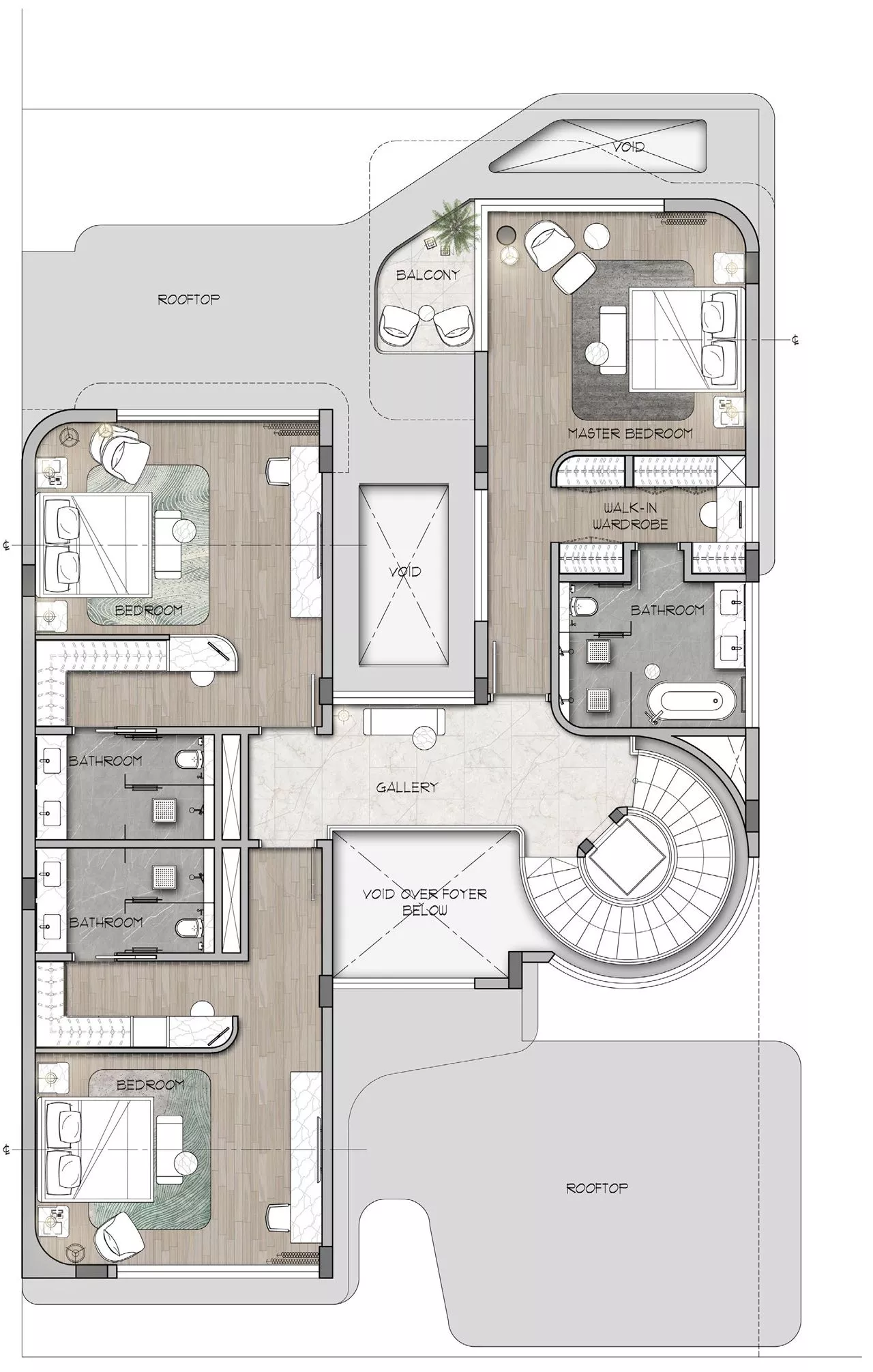 The residences are available in floor plans ranging from 6,545 sq.ft to 16,085 sq.ft. The villas will be three storeys high, with spacious balconies, a variety of functional spaces within the building and a private swimming pool on site. The site has parking for private vehicles and green recreational areas.